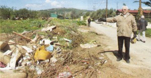 Μας είπαν τότε ότι ήταν προσωρινή λύση, αλλά τελικά δίπλα στις αυλές μας δημιουργήθηκε μια μεγάλη χωματερή. Απευθυνθήκαμε στον Αντιδήμαρχο Ερετρίας Γιάννη Τσώκο και μας απάντησε ότι δεν μπορεί ο Δήμος να καθαρίσει ξένο οικόπεδο. Να το βρωμίσει όμως ήξερε! Μάλιστα, προκάλεσε και ζημιές στην περίφραξη του οικοπέδου. Δυστυχώς, ο ιδιοκτήτης ζεί στην Αμερική και δεν γνωρίζει τις καταστροφές που έκαναν στην περιουσία του«.