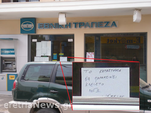 Κλοπή σημειώθηκε σήμερα 18 Ιουνίου 2010 στις 13:00 το μεσημέρι σε δύο υποκαταστήματα Τραπεζών της Ερέτριας. Τρία άτομα που καβαλούσαν μηχανή και αγνώστου εθνικότητας εισήλθαν αρχικά στο υποκατάστημα της Τράπεζας Πειραιώς αρπάζοντας άγνωστο χρηματικό ποσό. Πληροφορίες μιλούν πως μόνο οι δύο οπλοφορούσαν. Η αστυνομία ειδοποιήθηκε αλλά μέχρι να καταφθάσει οι ληστές είχαν προλάβει να κλέψουν και την Τράπεζα της Εθνικής!