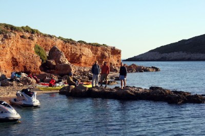 Δύο ακόμα εθελοντές, ο Χρήστος Φλεβοτόμος και ο Καλαφάτης Ορφέας ανέλαβαν να υποδεχτούν τους κωπηλάτες έξω από την Αλόννησο με τα τζετ σκι τους, και να τους συνοδεύσουν σε ένα κομμάτι του ταξιδιού τους.