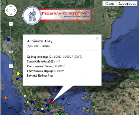 Το βάθος του σεισμού ήταν 5 χιλιόμετρα και το επίκεντρο 116 χιλιόμετρα βορειοδυτικά της Αθήνας.