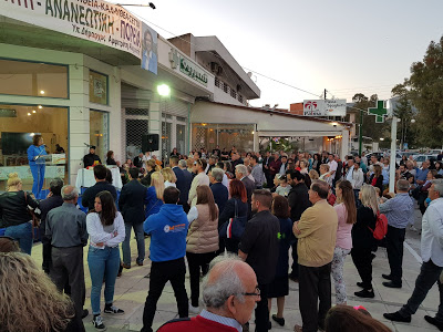 Παρουσία πλήθους κόσμου πραγματοποιήθηκαν χθες το βράδυ τα εγκαίνια του εκλογικού κέντρου στην Ερέτρια της δημάρχου και υποψήφιας Αμφιτρίτης Αλημπατέ. Στην ομιλία της η Δήμαρχος Ερέτριας παρουσίασε μέρος του μεγάλου έργου, το οποίο έχει επιτελεστεί στο Δήμο Ερέτριας ή είναι