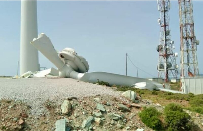 Άλλη μια επικίνδυνη εξέλιξη είχαμε στην περιοχή μας καθώς στη θέση Γκούρι Μάδι, κοντά στο Μαρμάρι, ο ρότορας και τα πτερύγια ανεμογεννήτριας κατέρρευσαν υπό συνθήκες άπνοιας, χωρίς ευτυχώς άλλες συνέπειες.
