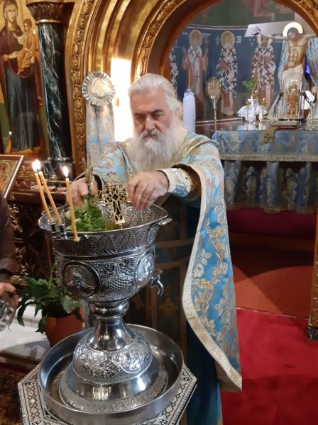 Εν συνέχεια μετά το πέρας της Θείας Ευχαριστίας λόγω ισχύουσων υγειονομικών διατάξεων εντός του ιερού ναού τελέσθηκε η Ακολουθία του Μεγάλου Αγιασμού των Θεοφανείων απο τον εφημέριο του ιερού ναού π. Θεοφάνη ο οποίος ευχήθηκε εόρτια προς όλους τους απανταχού πιστούς.