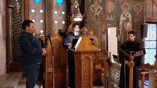 Οικονόμος Κυριακός Κοκκάλας επίσης στο αναλόγιο έψαλαν εκ δεξιού χορού ο μουσικολογιωτατος εφημέριος του ιερού ναού Οικονόμος Ιωάννης Μπαραμπούτης με τον Ιεροψάλτη του Ιερού Ναού Αγίου Νικολάου Ερέτριας κ. Δημήτριο Πετρογιάννη και τον Αναγνώστη Κωνσταντίνο Πετρογιάννη και εκ του αριστερού αναλογίου ο Ιεροψάλτης του ιερού ναού κ Αθανάσιος Παλόγος με τον Αναγνώστη Ευάγγελο Μεγάκη αποδίδοντας θαυμάσια τους πανηγυρικούς ύμνους της εορτής.